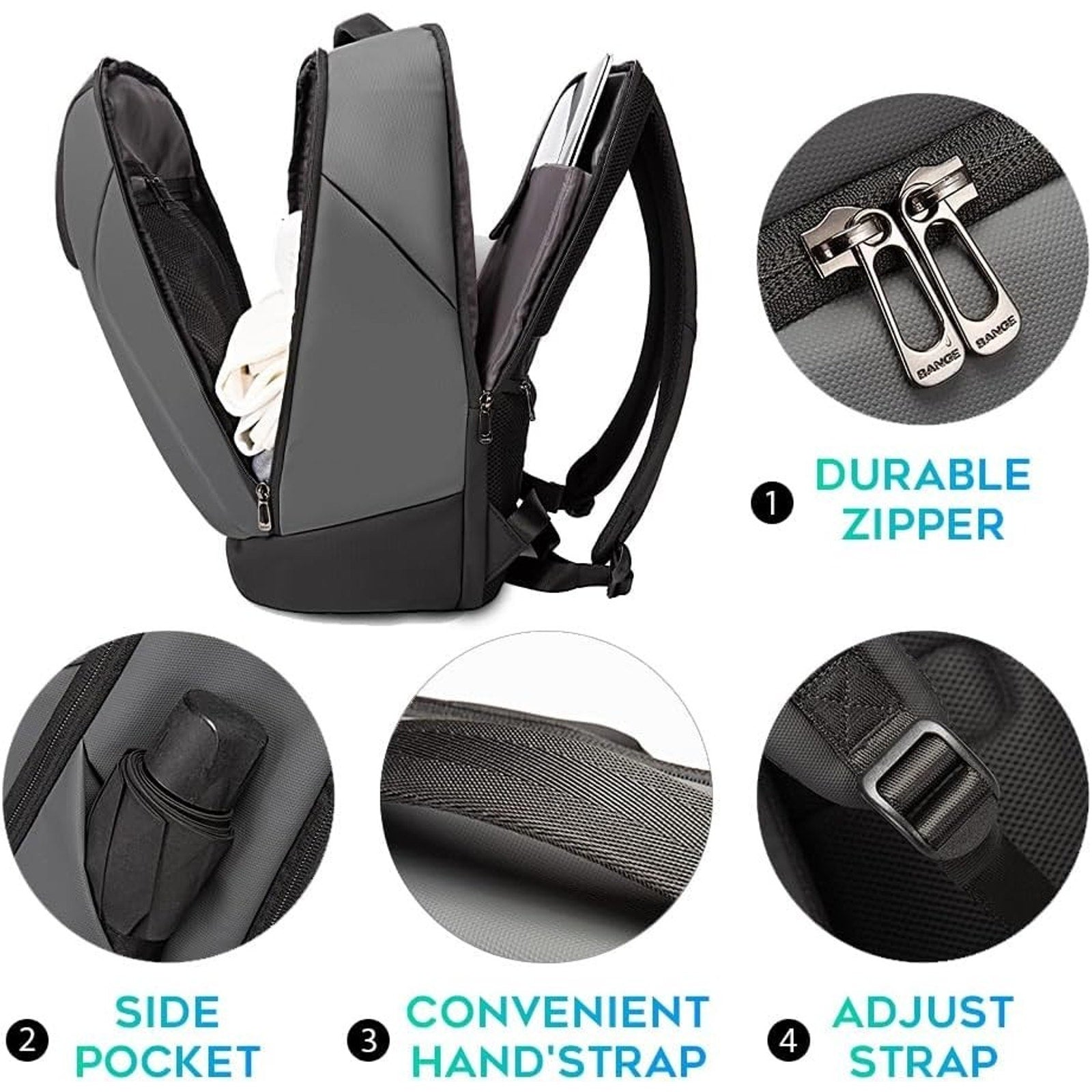 This sleek and professional BANGE backpack is ideal for daily commuting, travel, or business use. Designed to fit laptops up to 15.6 inches, it features a waterproof exterior, multiple compartments, and a slim profile perfect for office or urban environments. Great for keeping electronics and documents safe while on the go.