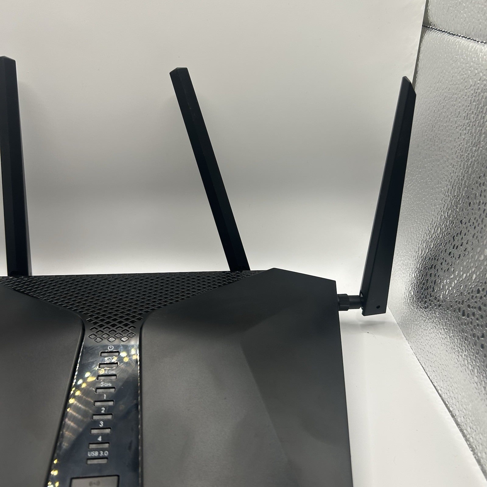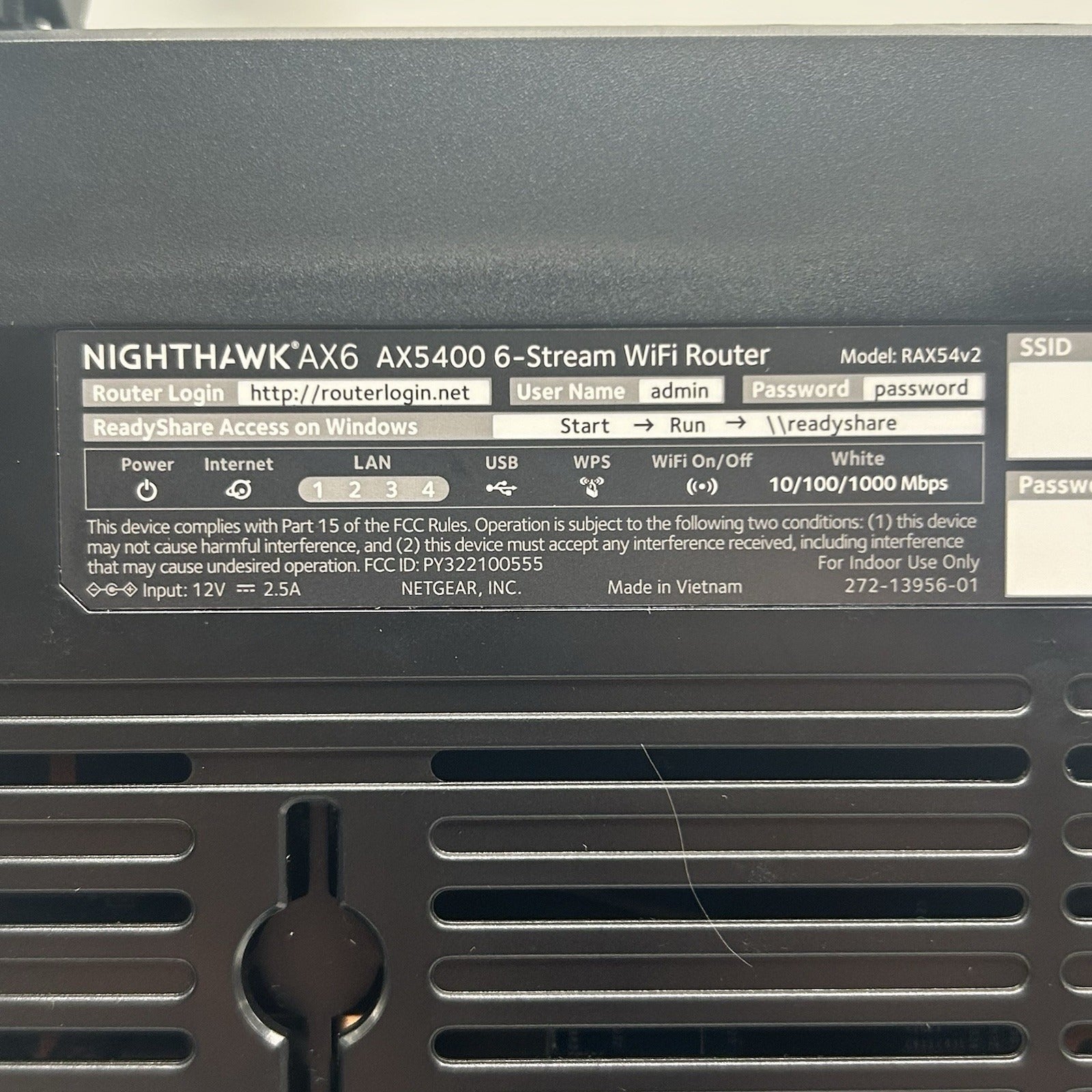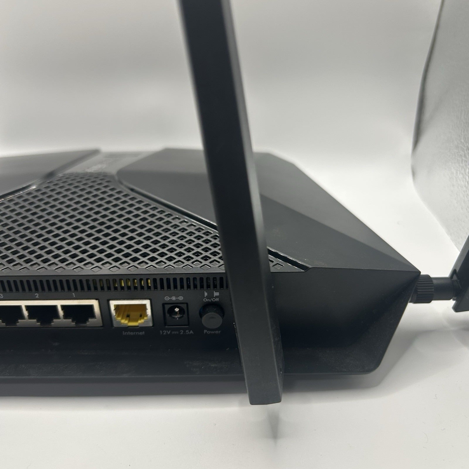 📦 Includes:• NETGEAR Nighthawk AX5400 RAX54v2 Router• 4x External Antennas (attached)• Power adapter (12V ⎓ 2.5A)